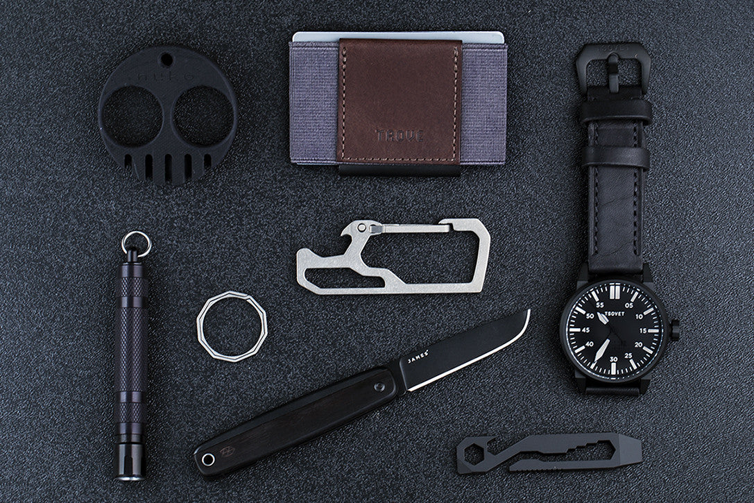 Everyday carry encompasses all those items which the modern man carries on his person day-in and day-out to ensure that he is prepared for whatever might come his way. Our weekly EDC pocket dumps are portraits of what one person might cary on a daily basis. Whether you are a designer with a penchant for pen knives, or a true blue marine carrying weapons of war - we hope these drops help you discover new tools and gadgets for daily use.