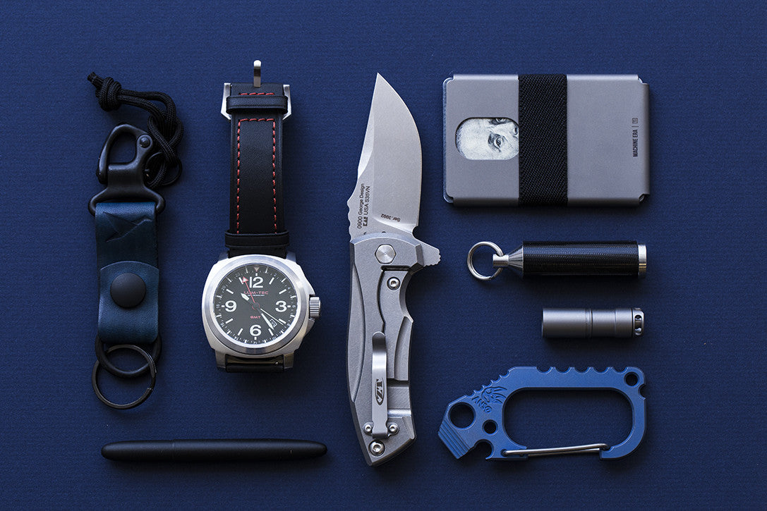 Everyday carry encompasses all those items which the modern man carries on his person day-in and day-out to ensure that he is prepared for whatever might come his way. Our weekly EDC pocket dumps are portraits of what one person might cary on a daily basis. Whether you are a designer with a penchant for pen knives, or a true blue marine carrying weapons of war - we hope these drops help you discover new tools and gadgets for daily use.